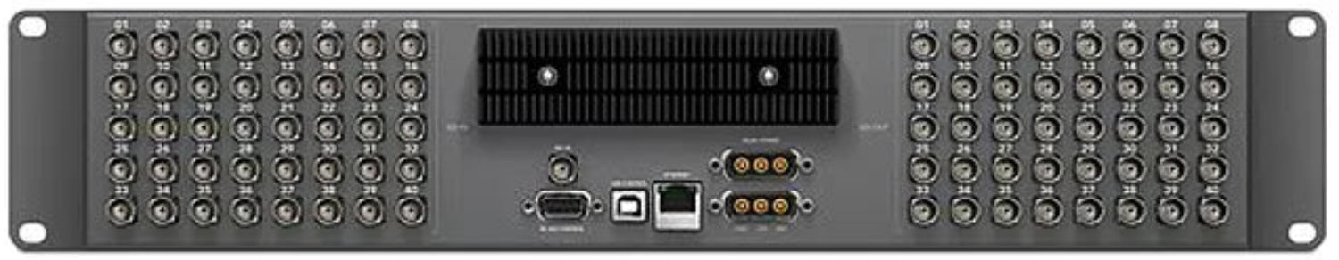 Perfect when you need a bigger router in a small size, such as creative post facilities and broadcast trucks! Compact Videohub includes 40 x 40 SDI routing all packed into a 2 rack unit size! You get auto SD, HD and 3 Gb/s HD-SDI detection, re-clocking, with built in ethernet, USB and serial router control interfaces.