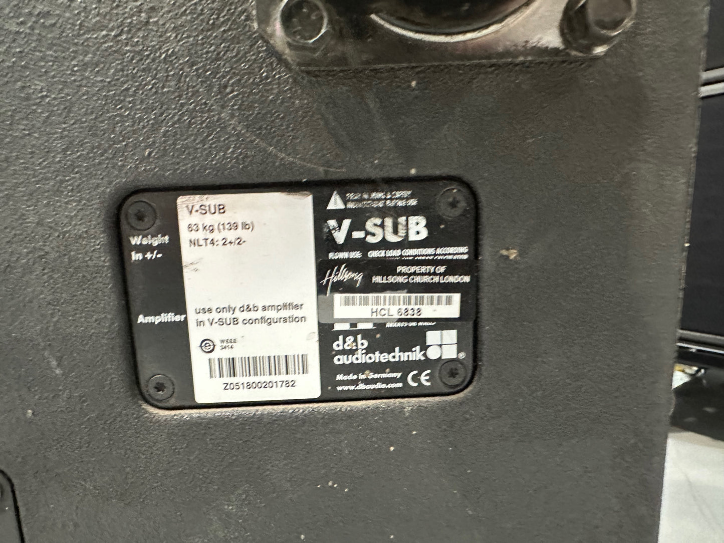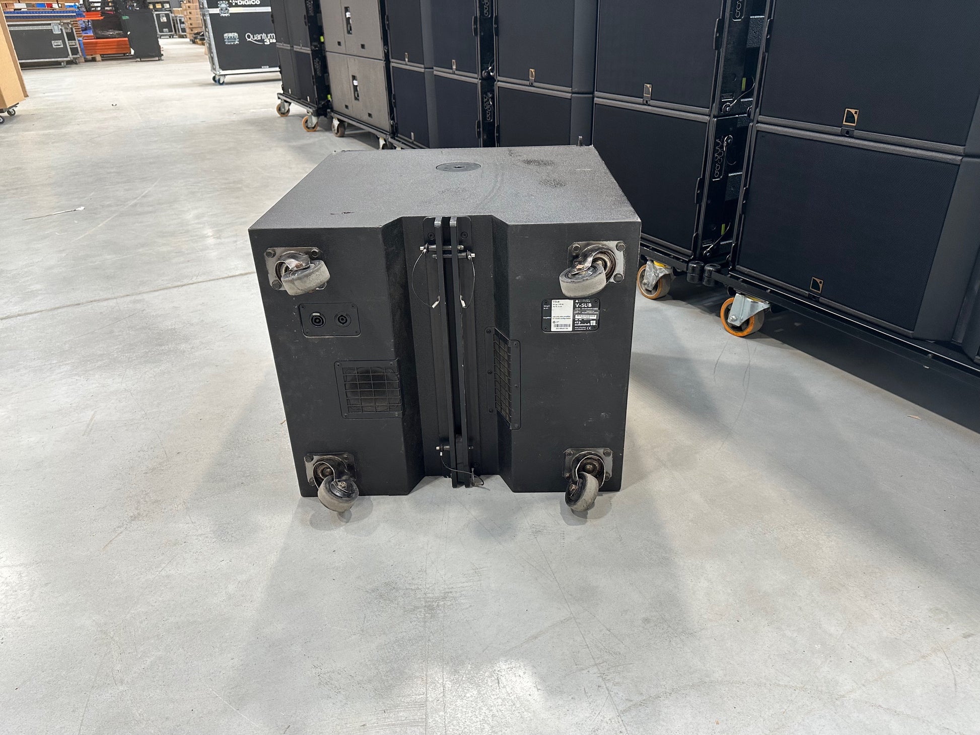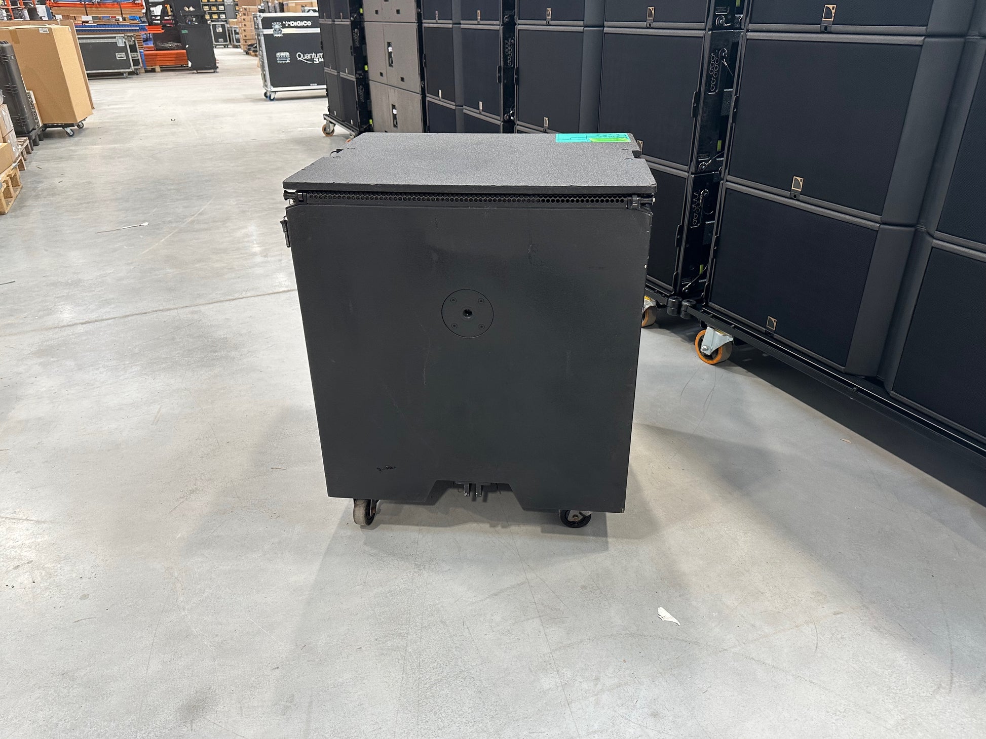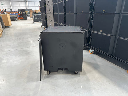The V-SUB is an actively driven high performance cardioid subwoofer powered by a single amplifier channel. The V-SUB features integrated rigging equipment, and shares the same acoustical and visual design as the V-GSUB, which is intended for ground stacked applications only. It houses two long excursion neodymium drivers, an 18" driver in a bass-reflex design facing to the front and a 12" driver in a two chamber bandpass design radiating to the rear.