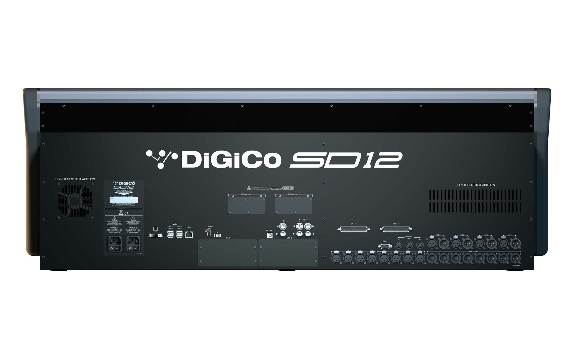 The SD12 is equipped with two assignable master faders and advanced surface connectivity via optional DMI cards.
