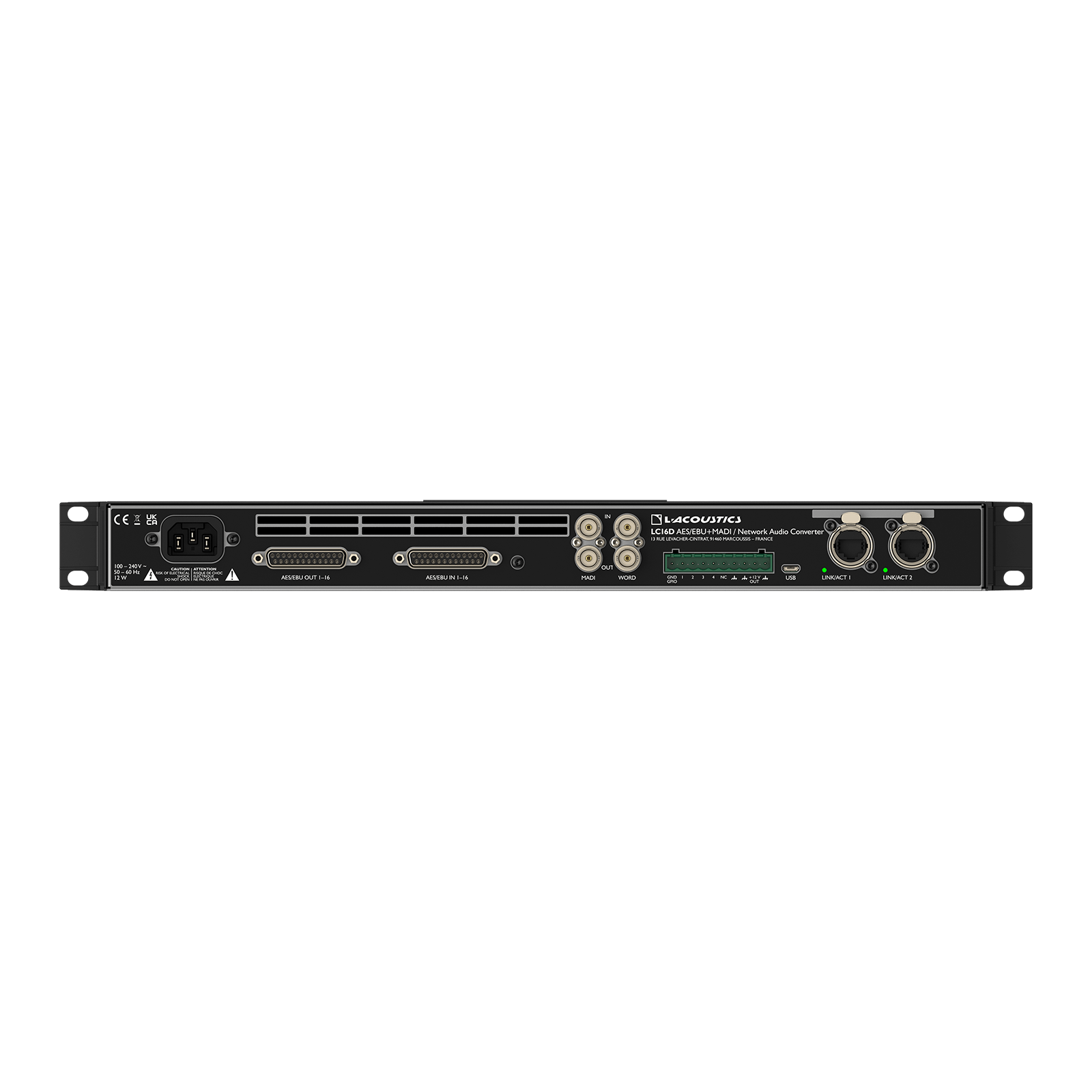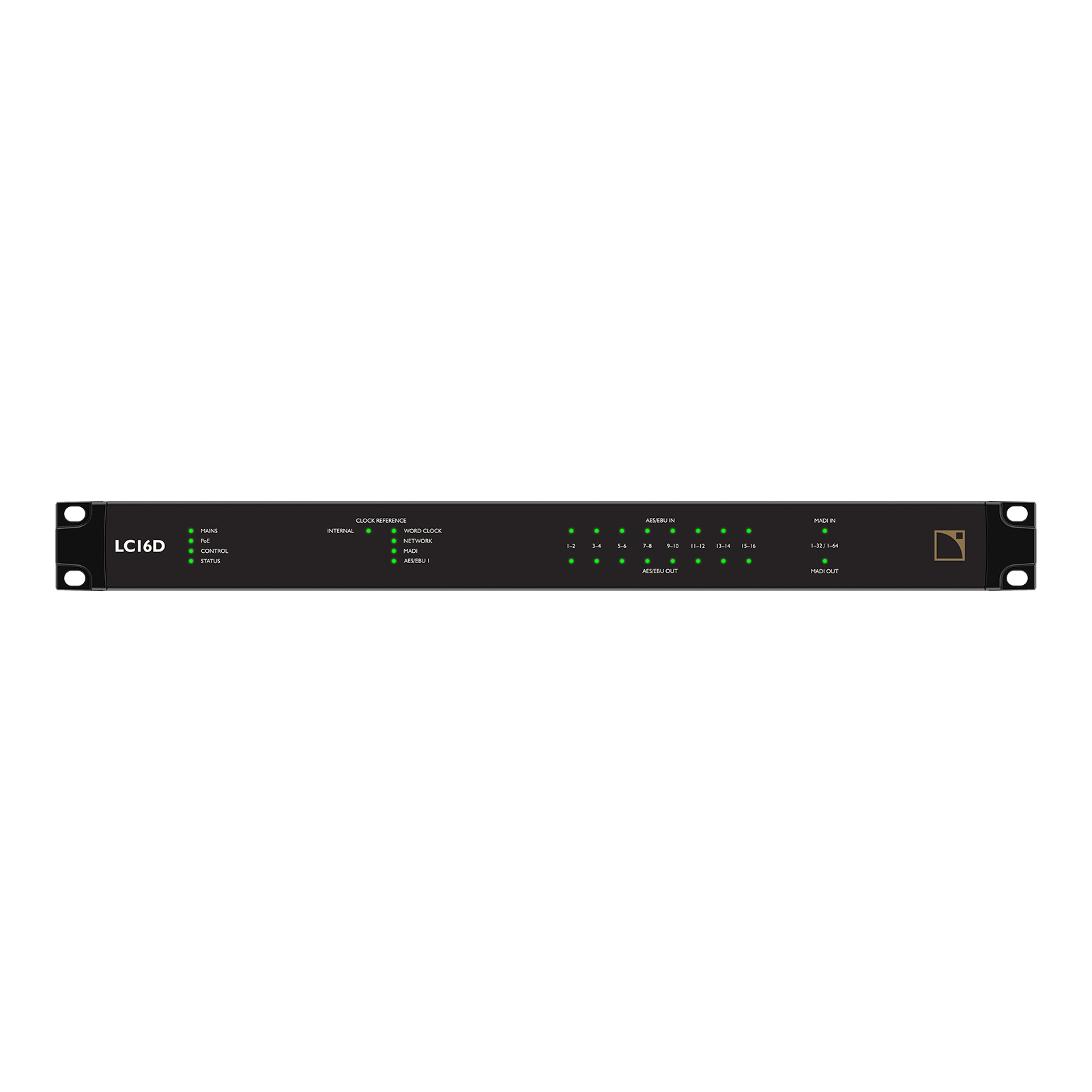 The LC16D is an ES/EBU+MADI Network Audio Converter. It supports up to 80 MADI and AES/EBU channels and up to 128 Milan-AVB channels.