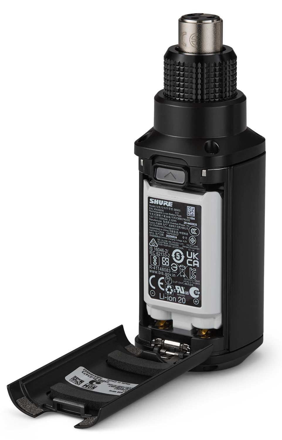 SLXD3+ Plug-On Digital Wireless Transmitter with patented wobble-free locking ring, 12/48V phantom power, USB-C powering and charging port,  Bluetooth remote monitoring and control, high pass filter, FW update via Bluetooth, 24 bit/48 kHz audio conversion, 118 dB dynamic range, includes 1 leather protective sleeve with integrated belt clip, 1 carrying bag, 2 AA batteries (optional: SB903 Rechargeable Li-Ion Battery), frequency band G57 (470-608 MHz, tuning range 138 MHz)