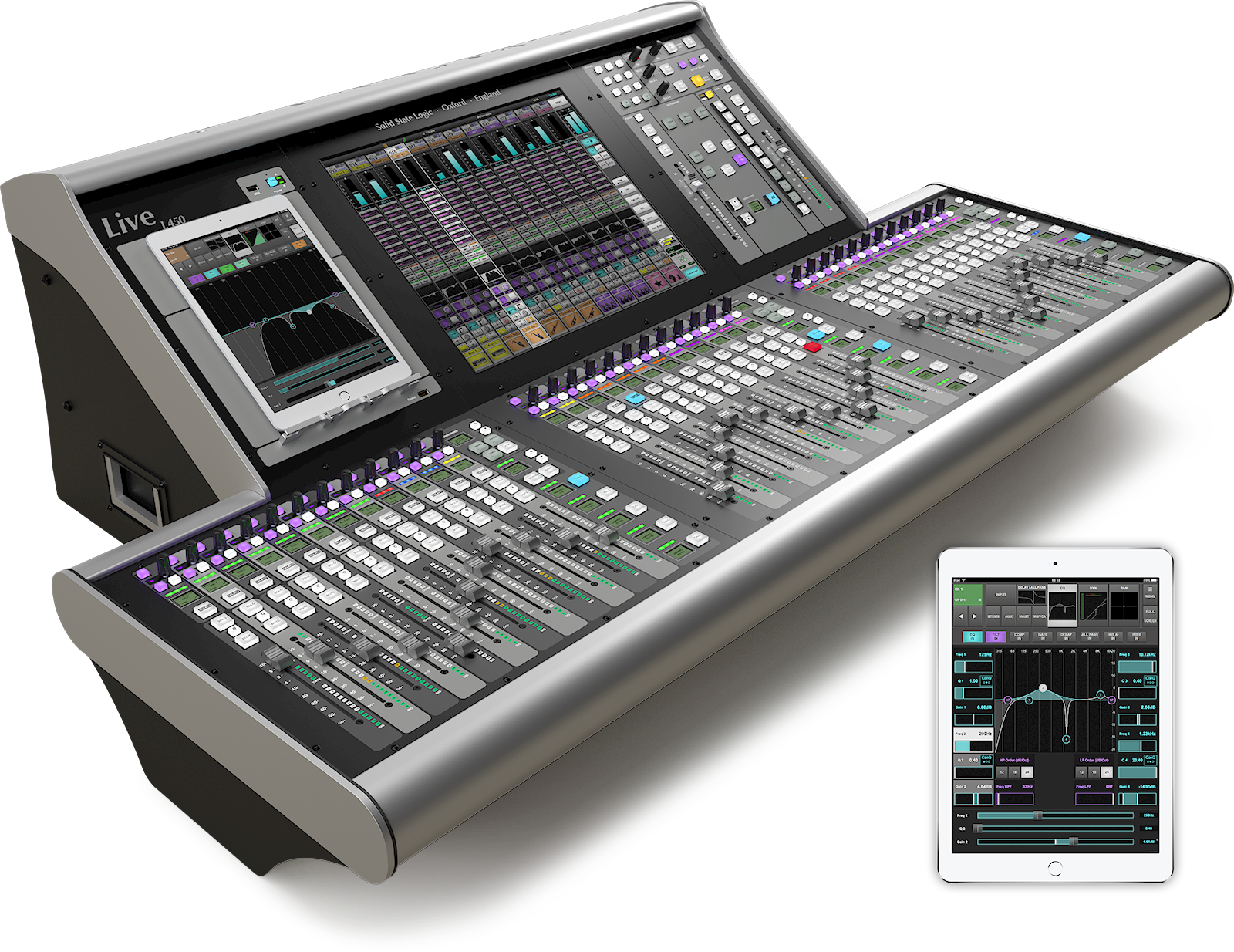 The L450 features a 19-inch high-resolution multi-touch screen with exceptional brightness, ensuring clear visibility. Its triple-wide fader tile includes cutaways designed to connect with external screens.